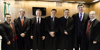Da esquerda para a direita: Procurador Alessandro José Fernandes de Oliveira, Juiz Lourival Pedro Chemim, Juiz Ivo Faccenda, Juiz Nicolau Konkel Junior, Desembargador Adalberto Jorge Xisto Pereira, Juiz Jean Carlo Leeck e Josafá Antonio Lemes.