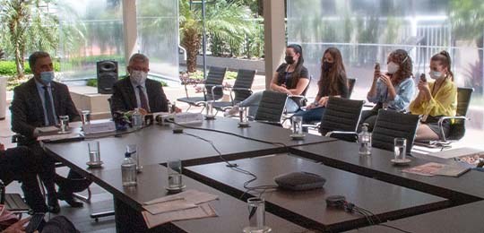 Durante o evento, o desembargador, acompanhado do diretor-geral do TRE-PR, doutor Valcir Mombach, ressaltou os projetos realizados no biênio de 2020 e 2021, tais como o Programa Universidade Amiga da Justiça Eleitoral, a agência de checagem de notícias Gralha Confere e os acordos de cooperação com a Associação das Emissoras de Radiodifusão do Paraná (AERP) e Federação das Associações das Rádios Comunitárias do Estado do Paraná (Farcom).