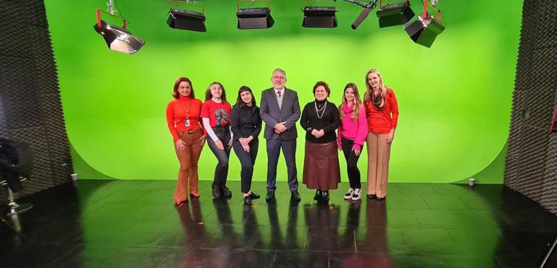 Na ocasião, a presidente Luzia Nadja Guimarães Nascimento, visitou o estúdio da Seção de Produção Audiovisual (SPA), onde conversou com as estudantes que fazem parte da equipe das redes sociais do TRE-PR, e participou da gravação de um TikTok.