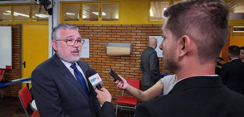 Ao final da votação, o presidente apresenta um balanço das eleições em uma coletiva de imprensa às 17h30, no hall de entrada do edifício-sede do TRE-PR.