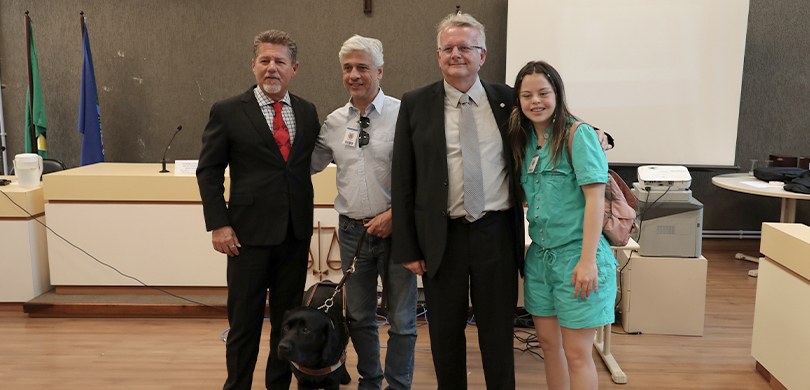 Além do desembargador Sigurd Roberto Bengtsson, do doutor Siderlei Ostrufka Cordeiro, da doutora Camila Mariana da Luz Kaestner e dos embaixadores de acessibilidade, Pietra Silvestri e doutor Roberto Leite, estiveram presentes pelo TRE-PR a doutora Andressa Chiamulera, promotora da 199ª ZE, e a diretora-geral, Solange Maria Vieira.