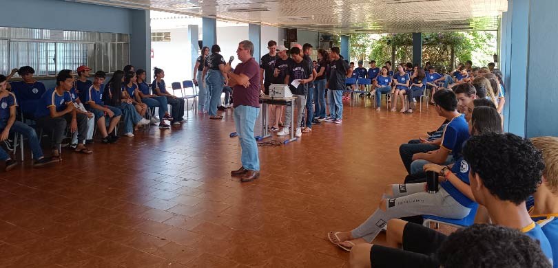O juiz eleitoral da 141ª ZE, doutor Guilherme de Mello Rossini, ministrou uma palestra às alunas e aos alunos sobre direitos políticos e a importância da participação cívica para incentivar a participação dos jovens de 15 a 18 anos no processo eleitoral por meio do voto.