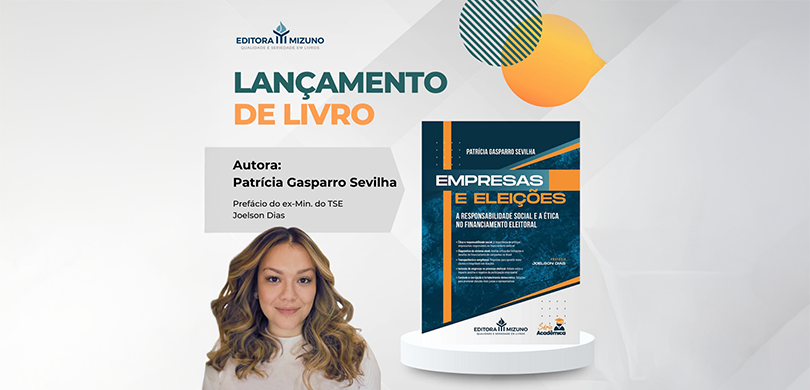 Na última segunda-feira (24), a chefe da 66ª Zona Eleitoral de Maringá, Patrícia Gasparro Sevilha, lançou o livro "Empresas e Eleições - A Responsabilidade Social e Ética no Financiamento Eleitoral”. O evento, realizado de forma virtual, ocorreu no site da Editora Mizuno e nas plataformas Amazon e Mercado Livre.