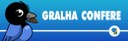 Banner em fundo azul. Há o desenho de uma gralhinha com um pinhão na boca e está escrito, em fonte branca, Gralha Confere