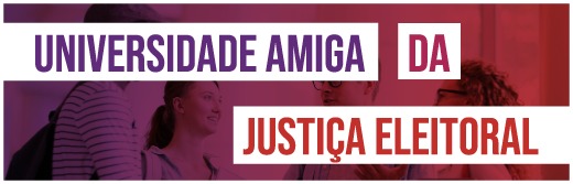 Banner em fundo vermelho. Sobre uma faixa branca está escrito "Universidade Amiga da Justiça Eleitoral"