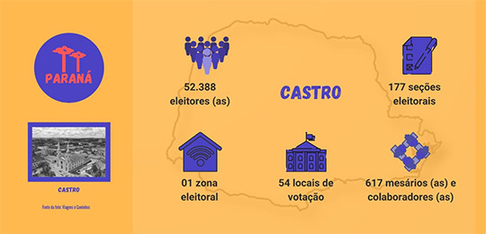 Já o município de Castro conta com 52.388 eleitoras e eleitores, uma zona eleitoral, 54 locais de votação e 177 seções eleitorais.