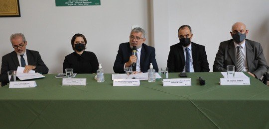 O presidente do Tribunal Regional Eleitoral do Paraná (TRE-PR), desembargador Wellington Emanuel Coimbra de Moura, acompanhado do doutor Rodrigo Otavio Rodrigues Gomes do Amaral, juiz membro da Corte Eleitoral e presidente da Comissão de Segurança do TRE-PR; do doutor Valcir Mombach, diretor-geral; e do doutor Josmar Ambrus, secretário da presidência, reuniu-se na manhã desta quinta-feira (03), com juízas e juízes eleitorais, junto com os chefes de cartório de Pato Branco e região, para tratar de temas ligados aos preparativos das Eleições 2022.