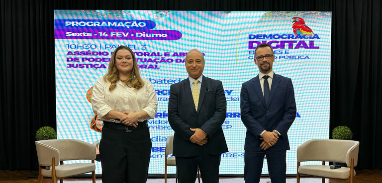 Na sequência, os palestrantes Marcelo Godoy, Patricia Gasparro Sevilha e Roberto Maia falaram da atuação da Justiça Eleitoral no combate ao assédio eleitoral e ao abuso de poder. A liberdade de expressão e a eficácia desse direito nas eleições foi tema de painel com a participação de Vania Aieta, Diogo Rais e Guilherme Gonçalves.