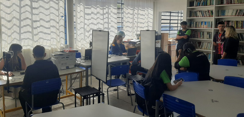 A 11ª Zona Eleitoral de Rio Negro também realizou palestra em colégios da região para alunos do 1º, do 2º e do 3º ano do ensino médio. A equipe divulgou a campanha e abordou temas como a importância do voto jovem, a democracia, a cidadania e a segurança da urna eletrônica. As alunas e os alunos ainda participaram de uma dinâmica sobre fatos e boatos envolvendo temas relacionados às eleições.
