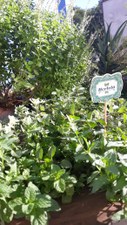 Cultivamos atualmente canteiros com manjericão, alecrim, hortelã, sálvia, rosmarim, tomilho, manjerona, orégano, cebolinha, salsinha, capim limão e gengibre.